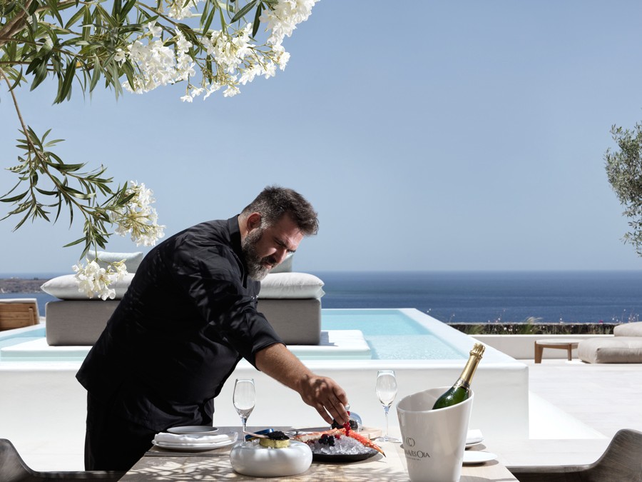 Στο fine dining εστιατόριο του εντυπωσιακού ξενοδοχείου του πολυτελούς ομίλου Canaves πάνω από το γραφικό Αμμούδι, ο εκφραστικός χαρακτήρας της κουζίνας του Τάσου Στεφάτου, Executive Chef των εστιατορίων του ομίλου «Canaves Oia», αποτυπώνεται σε ένα μενού διανθισμένο με τα τέσσερα στοιχεία της φύσης. Φωτιά, γη, αέρας και νερό αλληλεπιδρούν με τις εκφάνσεις της ζωής, αναδεικνύοντας με υποδειγματική φινέτσα την πρώτη ύλη.