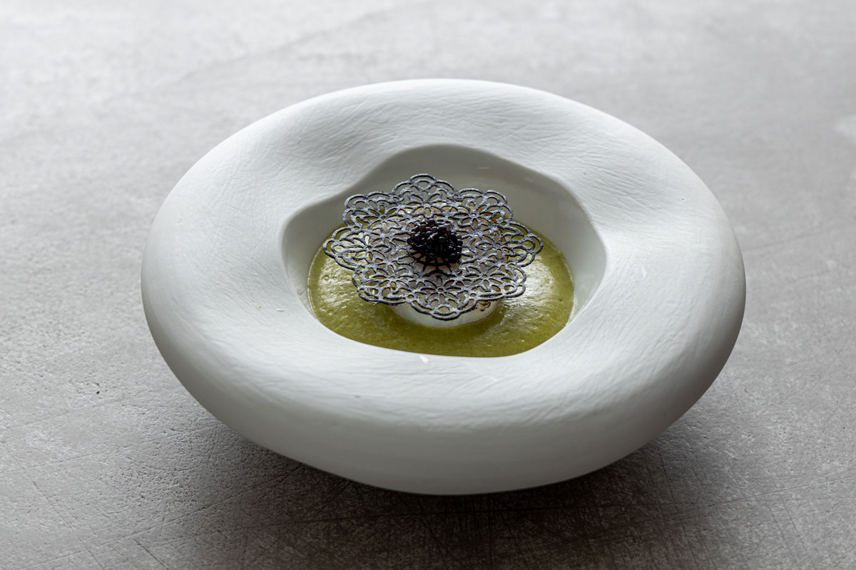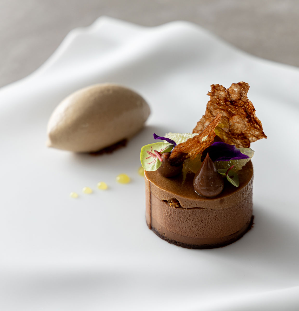 Για όσους έχουν πάει θα πω ότι η εμβληματική βελουτέ του από καλαµπόκι, αρωµατισµένη µε αστακό και αφρό από τρούφα και περγαµόντο παραμένει ένα υπέροχο, καλοδουλεμένο στις λεπτομέρειες πιάτο. Τα νουντλ στιγμής φτιαγμένα από σελινόριζα σε ζωμό μπέικον με αυγό παίζουν ένα έξυπνο παιχνίδι ανάμεσα σε καρμπονάρα και ράμεν και προσφέρουν μια αίσθηση τρυφερότητας και φροντίδας. Το καλύτερό μου ήταν το φουά γκρα στιφάδο με αφρό από κάστανο: ασκήσεις ισορροπίας της γλύκας των υλικών με νύξεις οξύτητας και ωραία γήινα αρώματα. Αγάπησα τη ζεστή πατατοσαλάτα σαν παέγια, µε φρέσκο καλαµάρι και καπνιστά μύδια, και την τηγανίτα από ξινόχοντρο µε γλειφιτζούρι από τοπιναµπούρ και γαρίδες Κοιλάδας.
