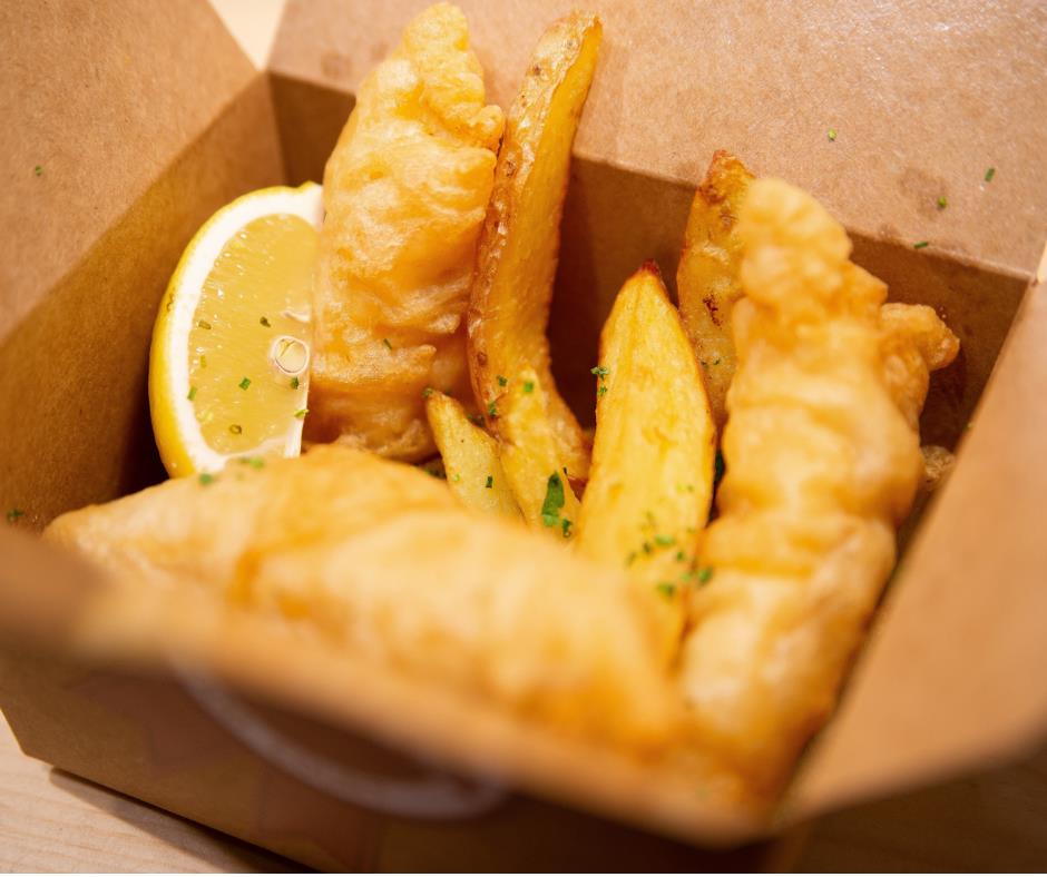 Άλλο ένα πιάτο του δρόμου που μας άρεσε ήταν η τορτίγια με το μοσχαρίσιο κρέας, που εκτός του κρέατος περιείχε καραμελωμένο κρεμμύδι, πιπεριές και τυρί προβολόνε. Σίγουρη επιλογή, αρκετά ζουμερή και γευστική. Το επόμενο πιάτο ήταν από τον σταθμό My Fish Fishing: British Fish ‘n’ chips από βακαλάο τηγανισμένο σε τραγανό κουρκούτι μπίρας που συνοδευόταν από τηγανητές πατάτες και σος garlic mayo. Συνοδεύσαμε με μπίρα και κρασί από το Wine Station, που θα βρεις στο κέντρο του χώρου.