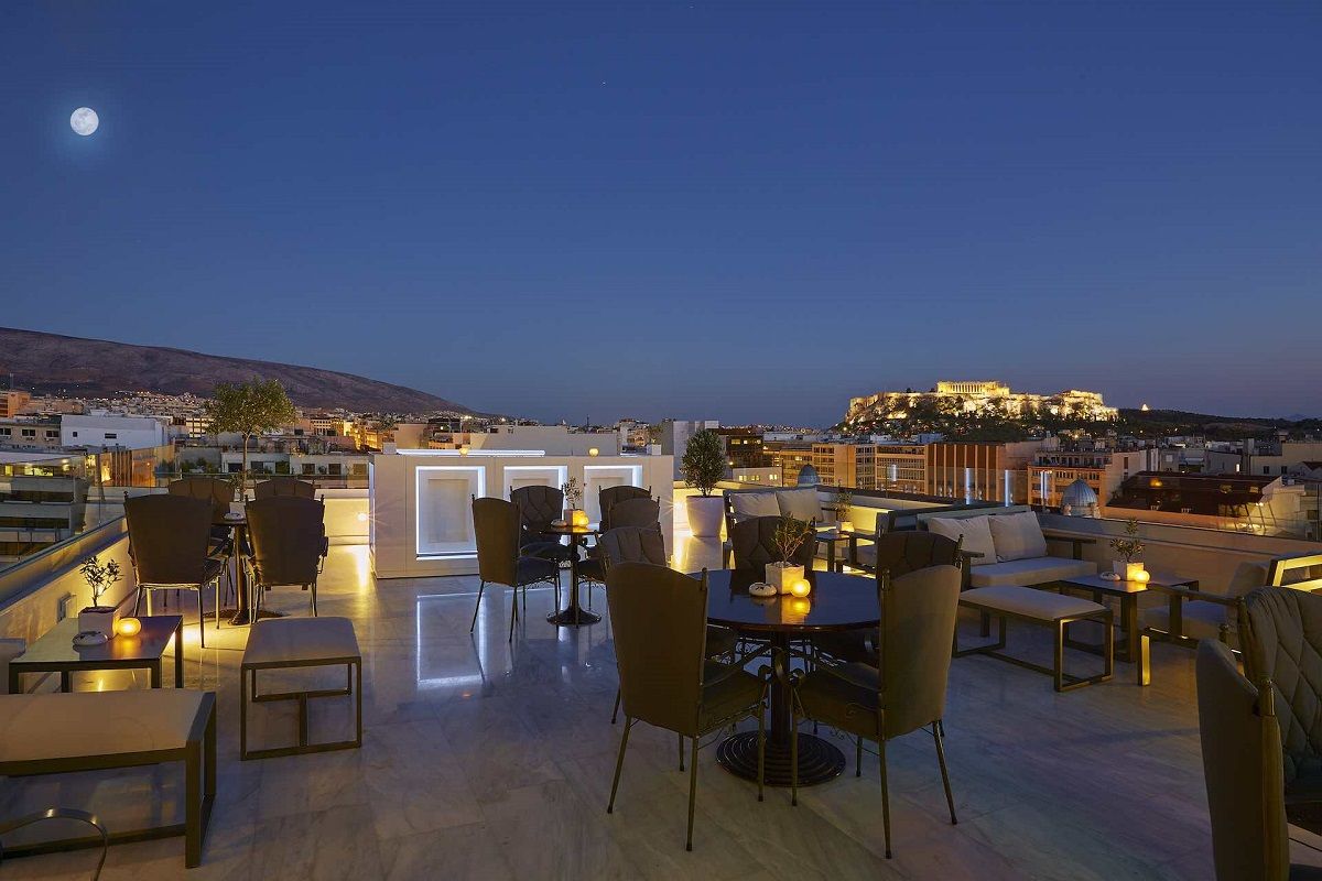 Το ανανεωμένο εστιατόριο, με μοντέρνες πινελιές σύγχρονης αισθητικής και κοσμοπολίτικη ατμόσφαιρα, σε προϊδεάζει για την εκλεπτυσμένη και ενδιαφέρουσα γευστική συνέχεια. Η πανοραμική θέα 360° από ψηλά σε όλη την Αθήνα – από την Ακρόπολη και το Λυκαβηττό μέχρι τον Υμηττό και τον Αργοσαρωνικό- δίνει τη ρομαντική νότα που χρειάζεται και το γευστικό ταξίδι που ετοίμασε για εμάς ο executive chef Χρίστος Τζιλήρας ξεκινά υπό τις καλύτερες προϋποθέσεις.