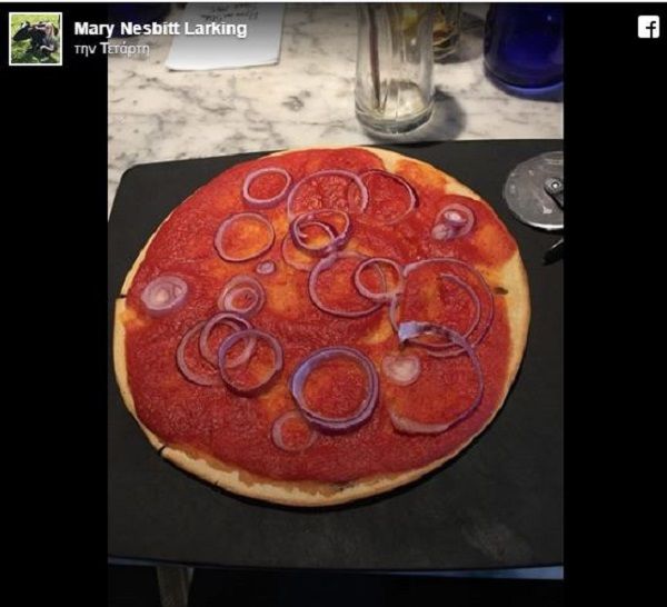 Η Mary Nesbitt Larking επισκέφθηκε πριν λίγες μέρες μία πιτσαρία στο Hatfield και όντας vegan, ζήτησε μία από τις vegan πίτσες που έτσι κι αλλιώς υπήρχαν στον κατάλογο του μαγαζιού. Όπως την ενημέρωσαν όμως, τους είχε τελειώσει το φυτικό τυρί, έτσι κι αυτή ζήτησε να προσθέσουν εναλλακτικά στην πίτσα της κουκουνάρι και κρεμμύδια. Αυτό όμως που ήρθε τελικά στο τραπέζι της, σίγουρα δεν το περίμενε!