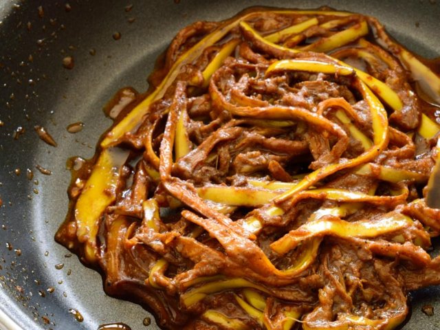 Η συνταγή της περιέχει κάποια βασικά συστατικά, που συναντάμε στα περισσότερο burgers, όπως ελαιόλαδο, coleslaw (σαλάτα με λάχανο, καρότο και μαγιονέζα), bbq sauce και μπαχαρικά, όπως πάπρικα, τσίλι, κύμινο και μουστάρδα σε σκόνη. Περιέχει όμως και ένα απίστευτα απρόσμενο υλικό: Φλούδα μπανάνας αντί για χοιρινό!
