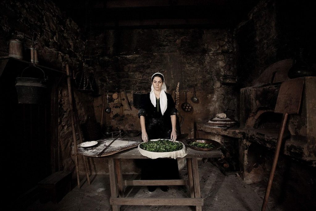 Ο θρίαμβος της βλάχικης μαγειρικής είναι η πίτα που γίνεται σ’ ένα φαρδύ, ρηχό ταψί, το οποίο έχει ένα κοίλο, κωνικό μεταλλικό κάλλυμα (γάστρα) που παίζει σπουδαίο ρόλο για το ψήσιμο της πίτας. Η πίτα γίνεται με το άπλωμα τεσσάρων η περισσοτέρων φύλλων από ζυμάρι, στον πάτο του ταψιού, πάνω στα οποία βάζουν ένα παχύ ενδιάμεσο στρώμα από λαχανικά, τυρί ή λεπτά κομμένο κρέας. Αυτό σκεπάζεται με έξι ή περισσότερα φύλλα από λεπτό ζυμάρι, πλούσια ραντισμένα με βούτυρο και κάπου-κάπου ένα κομματάκι τυρί. Όλα τα είδη πίτας είναι καλά, αλλά το καλύτερο είναι εκείνο που γίνεται με πράσα, τσουκνίδια ή άλλα παρόμοια λαχανικά. Για κάποιον εντελώς άγνωστο λόγο, το φαγητό αυτό περιορίζεται στους Βλάχους και σπάνια το βλέπει κανείς στα ελληνικά χωριά. (Alan J. B. Wace – Maurice S. Thompson, Οι νομάδες των Βαλκανίων, 1914)