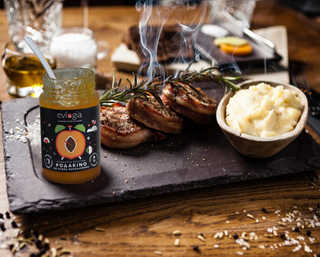 Χοιρινό φιλέτο σε κρούστα από μπαχαρικά με μαρμελάδα evlogia ροδάκινο-μοσχολέμονο