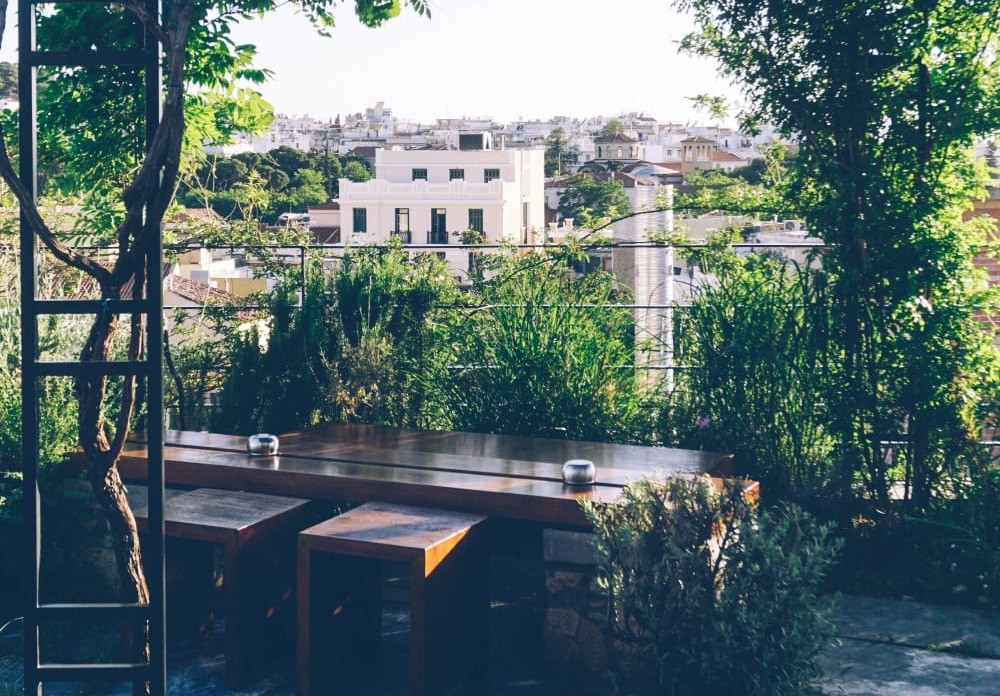 Μια πανέμορφη ταράτσα, πιστό αντίγραφο τυπικής αυλής μιας παραδοσιακής Ελληνικής κατοικίας και ένας κατάφυτος κήπος με ελιές, ροδιές, αμπέλια και βότανα: ένα μοναδικό σκηνικό που έγινε talk of the town από τις πρώτες μέρες της λειτουργίας του. Και φυσικά, πέρα από τα παραπάνω, δεν πρέπει να παραλείψουμε να αναφέρουμε την εξαιρετική θέα προς την Ακρόπολη, τον Λόφο του Φιλοπάππου, το Παρατηρητήριο και το Γκάζι.