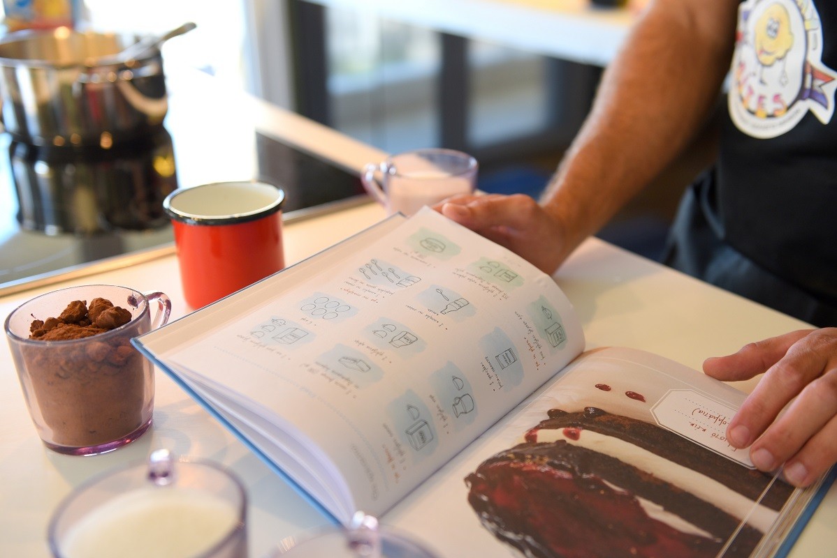 Το βιβλίο το εμπνεύστηκα από τους μαθητές μου, που ήθελαν ένα βιβλίο προσαρμοσμένο στον τρόπο που σκέφτονται και λειτουργούν. Είναι δηλαδή, προσαρμοσμένο στην αίσθηση ηρεμίας και ασφάλειας, όπου κατά την ανάγνωση επιθυμούν οι μαθητές μου, καθώς και στον τρόπο σκέψης τους. Και η διαφορετική παρουσίαση των συνταγών τις κάνει εύκολα κατανοητές, καθιστώντας αυτό το βιβλίο ξεχωριστό και μοναδικό. Επίσης, είναι σημαντικό το ότι χρησιμοποιούμε απλά καθημερινά υλικά και χωρίς ζυγαριά -στα δημόσια σχολεία άλλωστε ζυγαριές δεν υπάρχουν, πολλές φορές και οι πρώτες ύλες δεν ήταν διαθέσιμες. Και όμως, μέσα στις τόσες ελλείψεις καταφέραμε να δημιουργήσουμε κάτι εύγευστο και διασκεδαστικό.