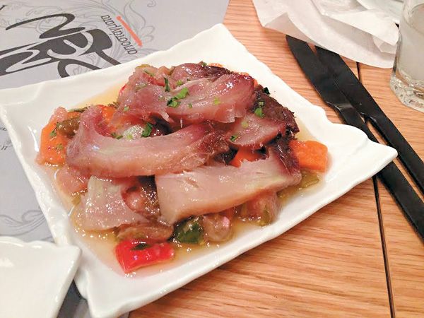 Εντύπωση προκαλεί και η διευρυμένη ενότητα «Αναμνήσεις από μια ελληνική ταβέρνα» στο μενού του εστιατορίου Botrini’s, η οποία πέρα από την ήδη κλασική τους ρέγκα με κερκυραϊκό τσιγαρέλι και μπομπότα, συμπεριλαμβάνει πια παλαμίδα (με ταραμά, ξίδι, ροδάκινο και γογγύλι), γαύρο (με παντζάρι, ροδάκινο και γογγύλι) μέχρι και εκείνο τον μεγαλόσωμο παριανό γαύρο (γαυροφρίσσα) σε εκδοχή πηλιορείτικου τσιπουράδικου (με τσιτσίραυλα και κρίταμα). Με αυτή τους την κίνηση τόσο ο Εκτορας Μποτρίνι όσο και ο Νίκος Μπίλλης καταθέτουν τις προσωπικές τους γευστικές αναμνήσεις, ερμηνεύοντας όμως με έναν άλλο τρόπο την αισθητική των γαστρομεζέδων.