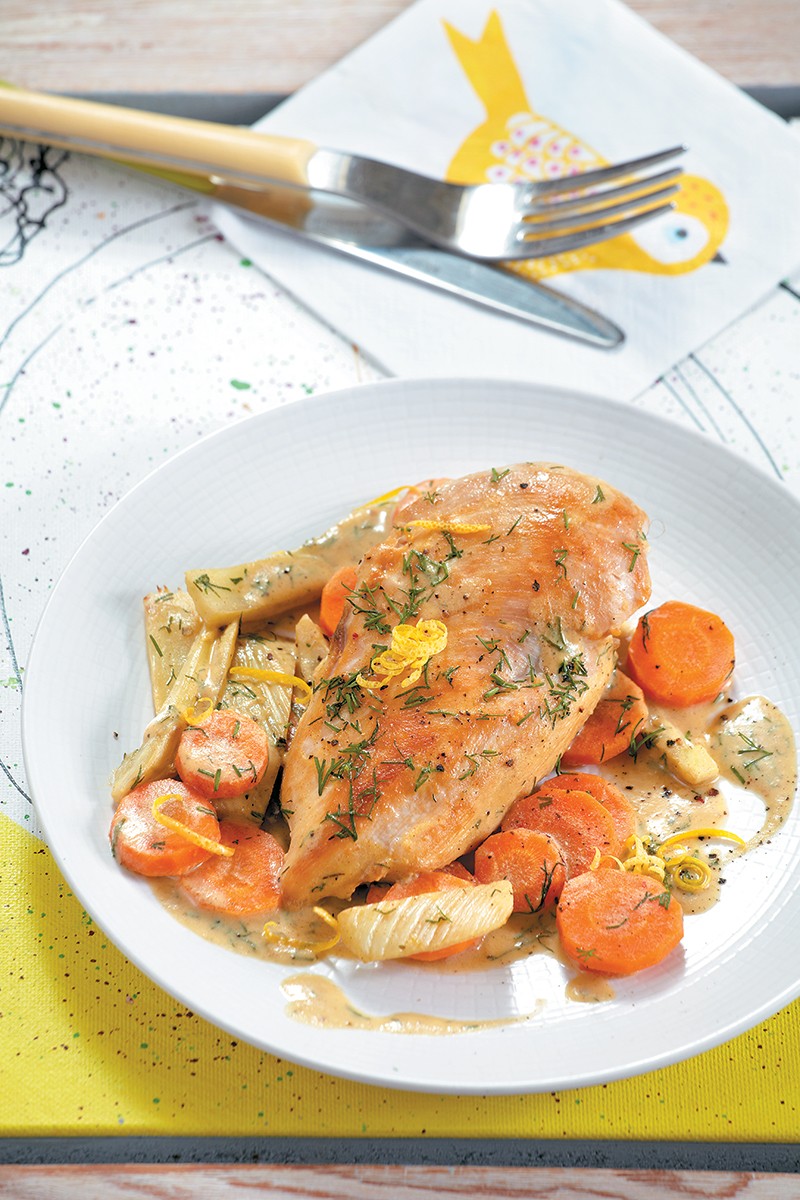 Φιλέτο κοτόπουλου με φινόκιο, καρότα και μουστάρδα
