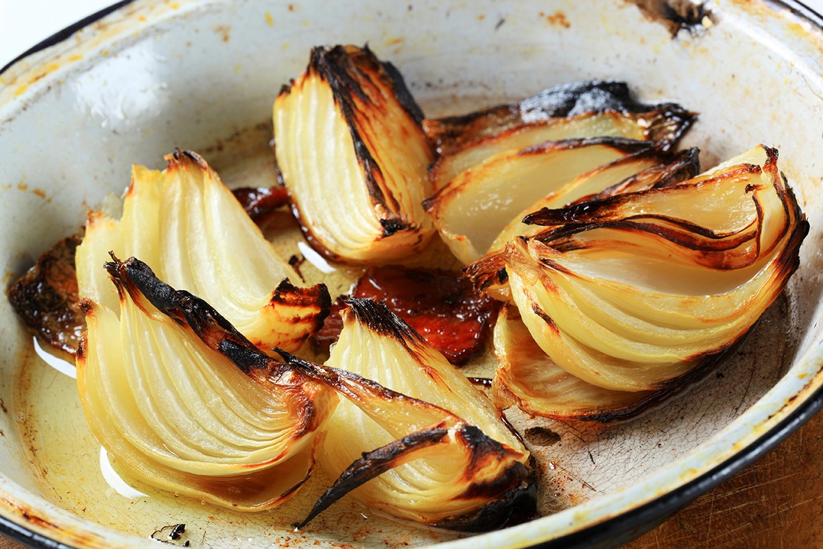 Έχετε δοκιμάσει να φτιάξετε γαρνιτούρα για το κρέας ή το ψάρι απλά και μόνο με κρεμμύδια; Φυσικά και γίνεται και είναι και πολύ νόστιμη. Εάν χρησιμοποιήσουμε εσαλότ απλά τα κόβουμε στη μέση, διαφορετικά κόβουμε τα μεγάλα κρεμμύδια σε μεγάλα κομμάτια και χωρίς να τα ξεφλουδίσουμε, τα ψήνουμε στον φούρνο, στους 200οC για 30-40 λεπτά, να μαλακώσουν. Τα αφήνουμε να κρυώσουν ελαφρά, αφαιρούμε τις φλούδες, τα χωρίζουμε σε φέτες και τα νοστιμίζουμε με ελαιόλαδο ή λιωμένο βούτυρο, ξίδι, αλάτι και πιπέρι.