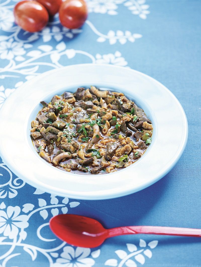 Μαγειρίτσα κοκκινιστή με σέσκουλα και κρεμμυδάκια