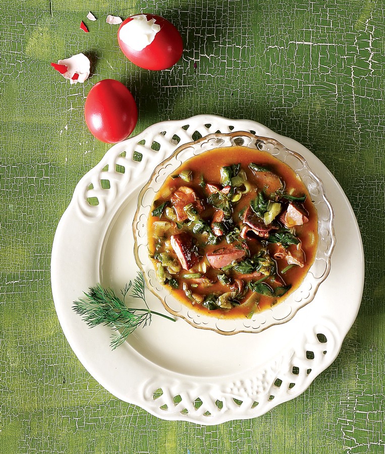 Σε διάφορα μέρη της Ελλάδας αλλά κυρίως στην Πελοπόννησο η μαγειρίτσα της Ανάστασης είναι κόκκινη με διάφορα χόρτα και μυρωδικά. Δείτε τη συνταγή ΕΔΩ