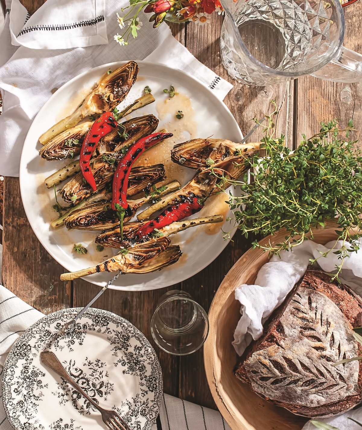 Σουβλάκια αγκινάρας με καυτερές πιπεριές και dressing εσπεριδοειδών