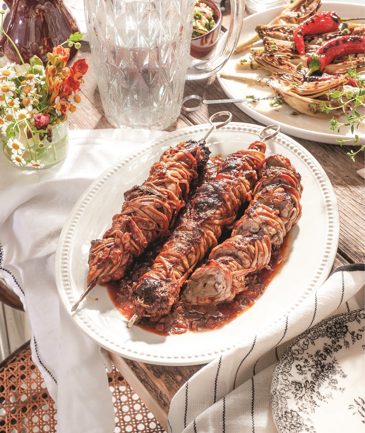 Αρνί κοντοσούβλι με μπαχαρικά, τυλιγμένο σε μπόλια