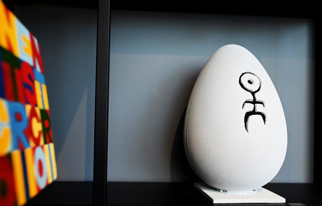 Σοκολατένιο αβγό, εμπνευσμένο από τον Αμερικανό καλλιτέχνη Κιθ Χάρινγκ.