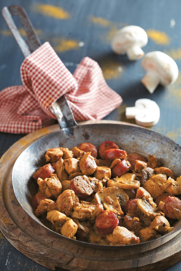 Τηγανιά µε κοτόπουλο και χωριάτικο λουκάνικο