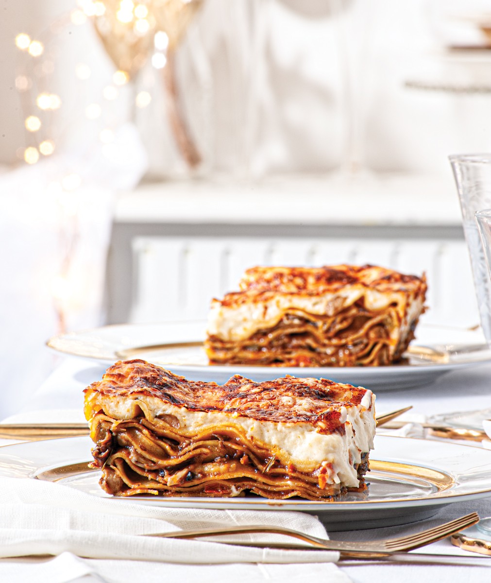 Λαζάνια με κιμά μανιταριών και μπεσαμέλ με Μετσοβόνε