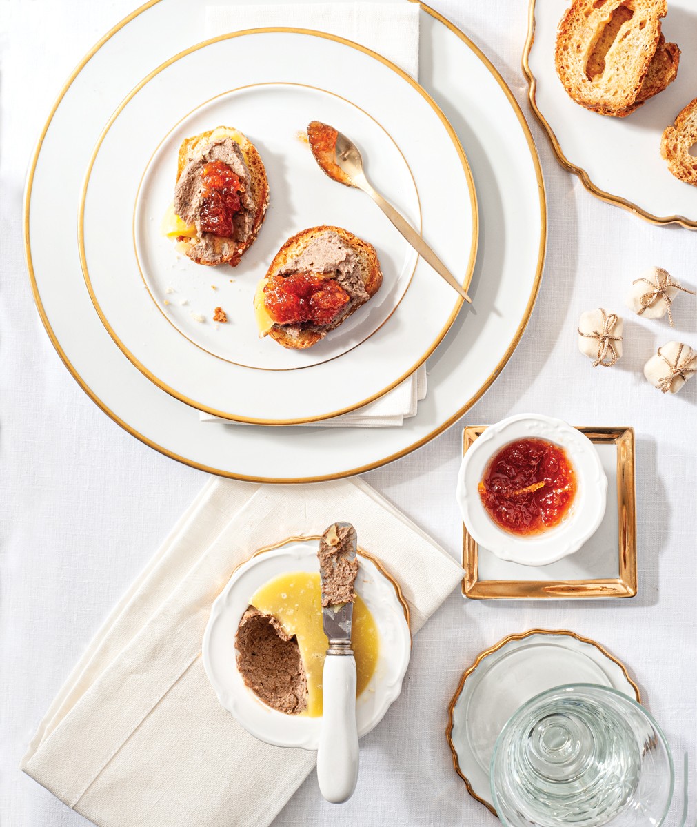 Πατέ από συκωτάκια πουλιών και μαρμελάδα κυδώνι σε φρυγανισμένο ψωμάκι