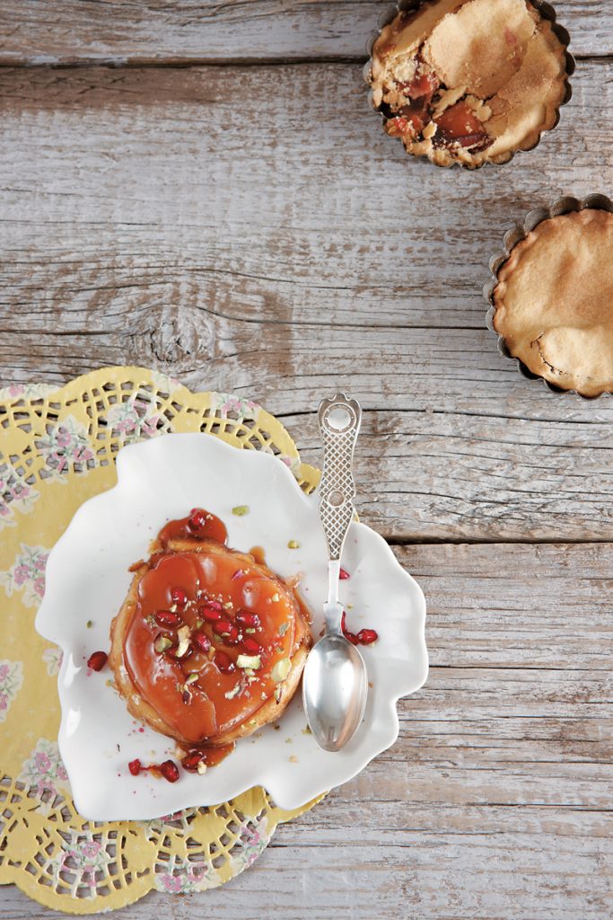 Τάρτες με κυδώνια και ρόδια σε σιρόπι γρεναδίνης. Τα φθινοπωρινά κυδώνια και ρόδια μετατρέπονται σε λαχταριστές τάρτες, που κλείνουν με τον πιο γλυκό τρόπο τα γιορτινά τραπέζια.