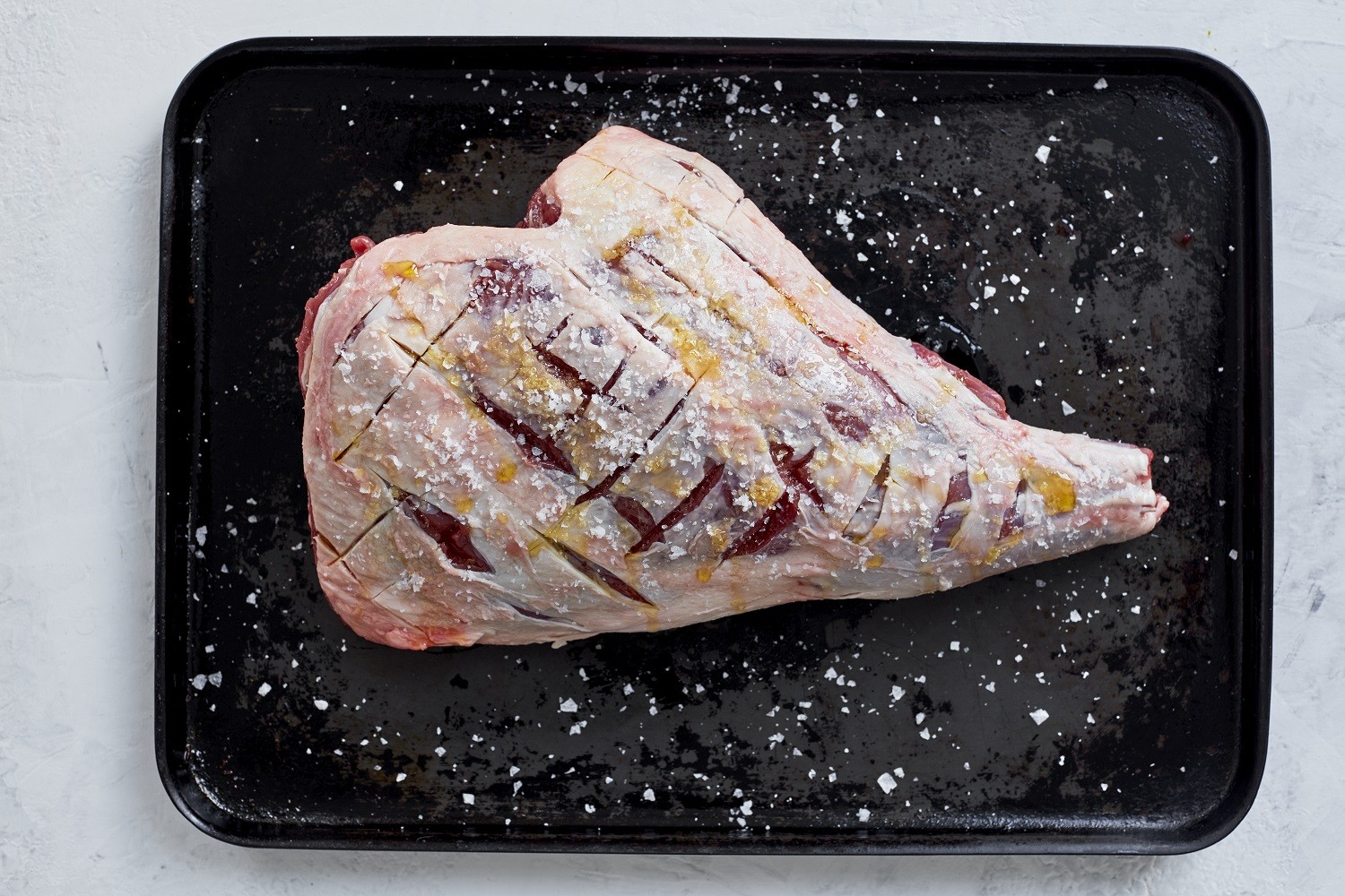 Το αρνίσιο μπούτι είναι ένα κομμάτι χωρίς πολύ λίπος, είναι πιο στεγνό. Το άλειμμα με ένα παχύ στρώμα βούτυρο θα το βοηθήσει να παραμείνει ζουμερό κατά το ψήσιμο χαρίζοντας νοστιμιά.