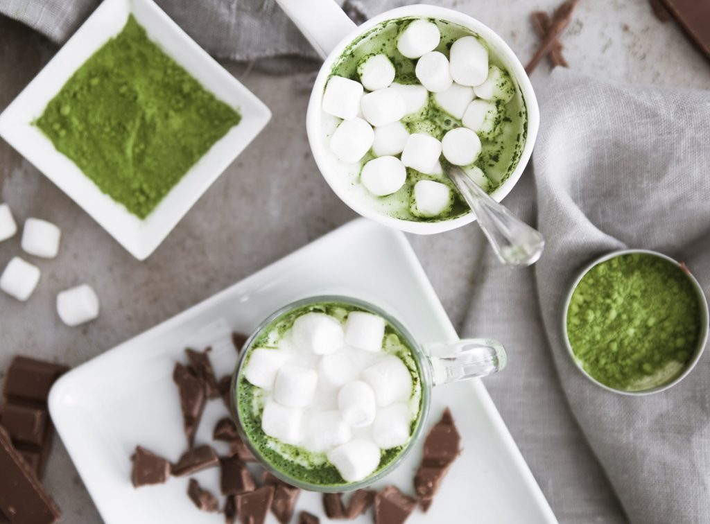 Κι όμως, αυτό που βλέπετε είναι ζεστό ρόφημα σοκολάτας, χάρη στο πράσινο τσάι μάτσα, που εκτός από το χρώμα δίνει και την απόλυτη γευστική ισορροπία στη λευκή σοκολάτα. Αν προσθέσουμε και καψαλισμένα μαρσμέλοους θα έχουμε ένα παιχνιδιάρικο και ινσταγκραμικό- ρόφημα.