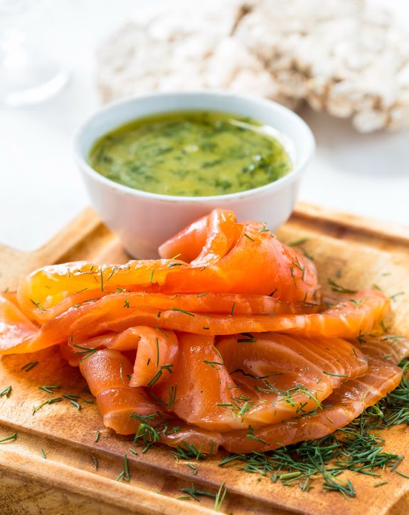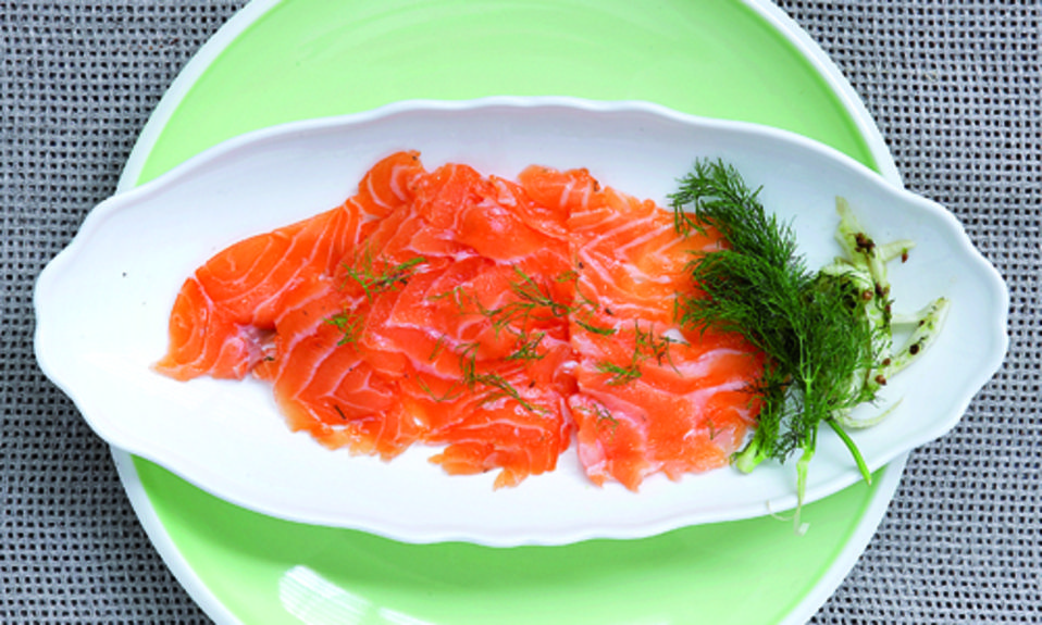 Μαριναρισμένος σολομός σε στιλ gravlax με μάραθο, κόλιανδρο και ούζο