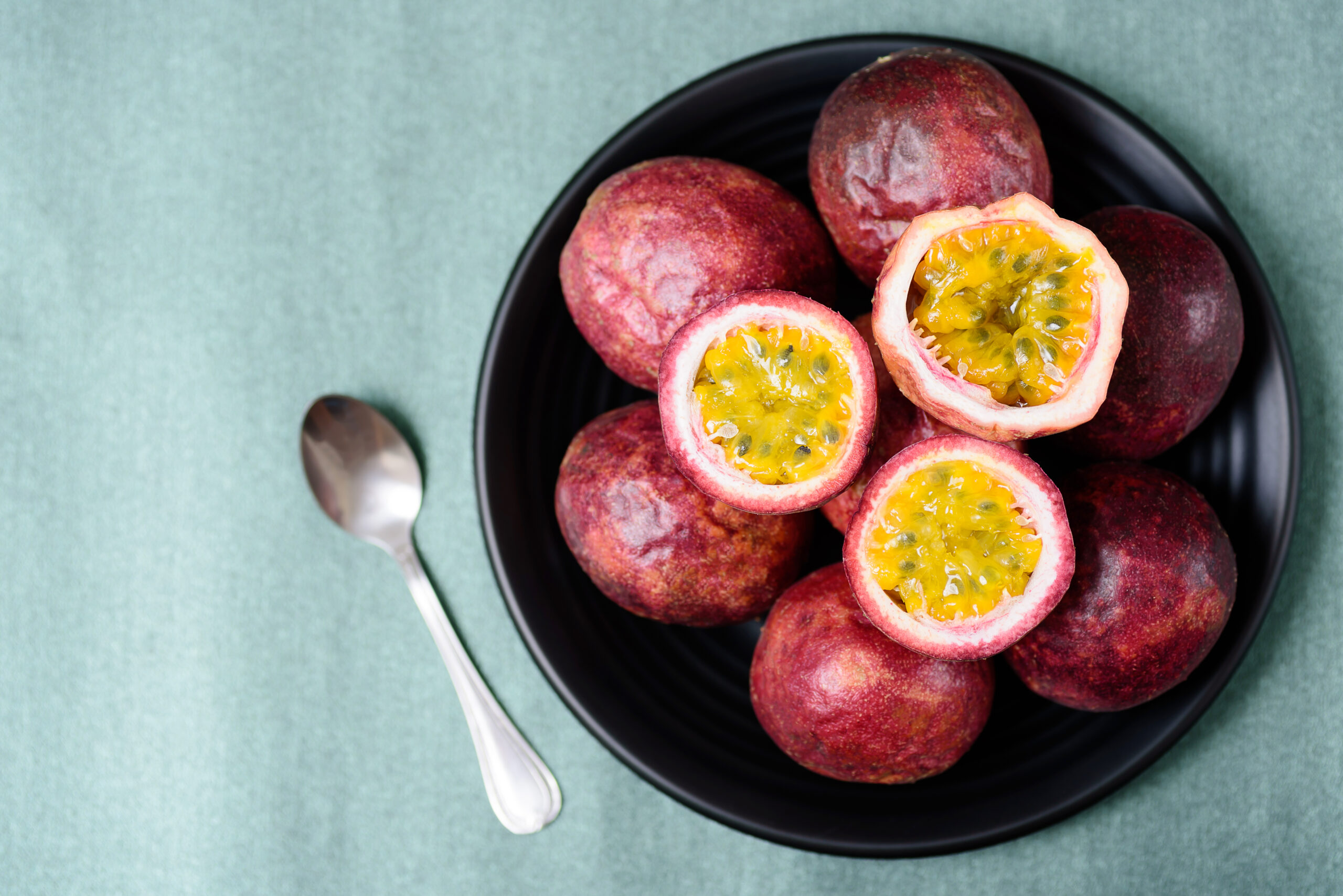 Σύμφωνα με το μύθο, το όνομα τους οφείλεται στους πρώτους Χριστιανούς που θεωρούσαν ότι το άνθος τους έμοιαζε με το αγκάθινο στεφάνι του Ιησού. Στο εσωτερικό του σκληρού μοβ κελύφους, “κρύβουν” ένα χρυσαφί ζουμερό πολτό με μικρά κουκούτσια. Τα φρούτα του πάθους αποτελούν εξαιρετική πηγή βιταμινών, μαγνησίου και σιδήρου. Ένας έξυπνος τρόπος να τα απολαύσετε είναι να αφαιρέσετε με ένα κουτάλι τον πολτό τους και να τον προσθέσετε σε γλυκιές συνταγές, ακόμα και σε σπιτικό παγωτό.
