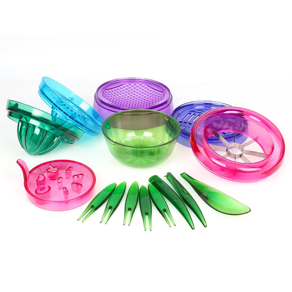 Στην ουσία πρόκειται για ένα παζλ από 10 gadgets, όπως λεμονοστύφτης, κόπτης μήλου και τρίφτης.