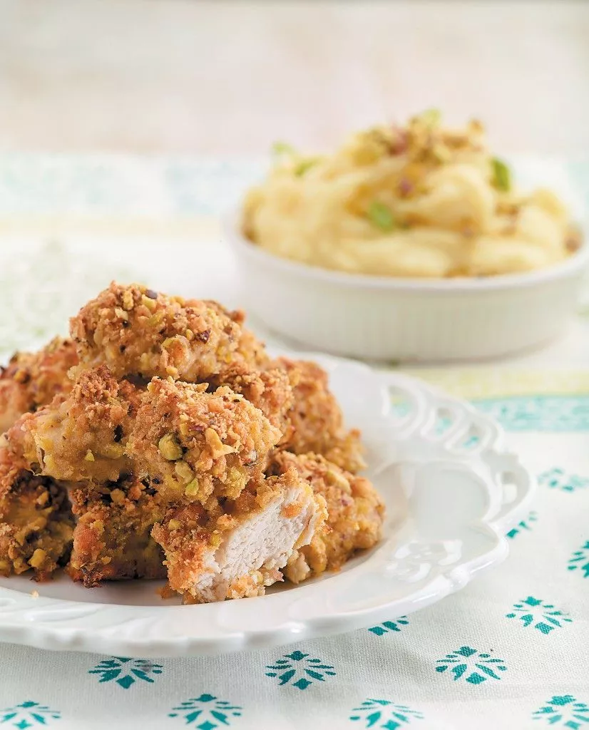 Κοτομπουκιές παναρισμένες με φιστίκι Αιγίνης