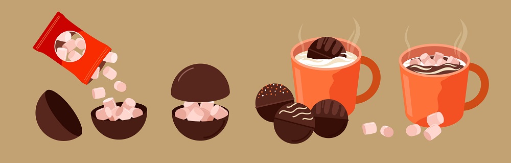 Η ημέρα του Αγίου Βαλεντίνου πλησιάζει. Αν θέλετε κάτι παιχνιδιάρικο κι εντυπωσιακό για την ημέρα, τότε μπορείτε να ετοιμάσετε ένα ξεχωριστό brunch για τον καλό σας ή την καλή σας. Αυτές οι σοκολατένιες βόμβες, που σκάνε ξαφνικά στην επιφάνεια ενός φλιτζανιού με ζεστό γάλα και απελευθερώνουν μίνι marshmallows και τρούφα, είναι μια υπέροχη πρόταση για να ξεκινήσετε πολύ γλυκά και ρομαντικά την ημέρα σας. Μπορεί να θέλουν λίγη υπομονή και χρόνο για να ετοιμαστούν, αλλά δεν είναι πολύ δύσκολες και πραγματικά αξίζουν τον κόπο γιατί είναι σίγουρο πως θα ενθουσιάσουν όσους τις δουν να σκάνε απότομα στο φλιτζάνι τους και να μεταμορφώσουν ένα απλό γάλα στο πιο σούπερ ζεστό ρόφημα σοκολάτας με ζαχαρωτά!