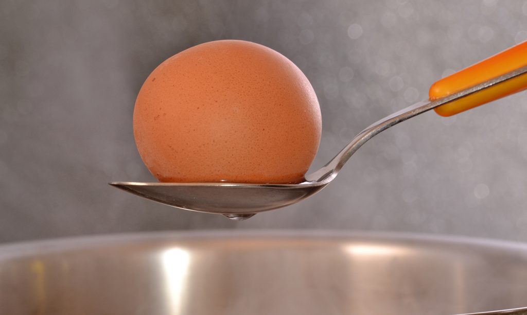 Μόλις το νερό αρχίσει να βράζει, παίρνουμε τα κρύα αυγά απευθείας από το ψυγείο (το σοκ της θερμοκρασίας θα τα κάνει πιο εύκολα στο ξεφλούδισμα). Χρησιμοποιούμε ένα μεγάλο κουτάλι για να τα τοποθετήσουμε προσεκτικά στο καυτό νερό. Αν τα αφήσουμε να πέσουν βιαστικά, μπορεί να χτυπήσουν στον πάτο και να σπάσουν, αφήνοντας κομματάκια ασπράδι διάσπαρτα στο νερό.