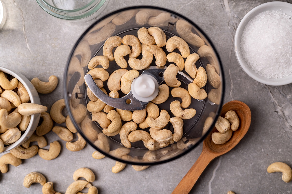 Αλέθουμε τα κάσιους: Συνεχίζουμε βάζοντας τους ξηρούς καρπούς στο μπλέντερ και τα αλέθουμε μέχρι να σχηματιστεί σιγά σιγά μια λεπτόρρευστη υφή. Η διαδικασία θα διαρκέσει περίπου 10-15′ ανάλογα με τη ισχύ του μπλέντερ μας, ενώ θα χρειαστεί να σταματάμε κάθε 2′ τόσο για να ξεκολλάμε από τα τοιχώματα του δοχείου τα υπολείμματα κάσιους, όσο και για να μην υπερθερμανθεί η συσκευή.