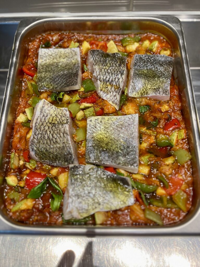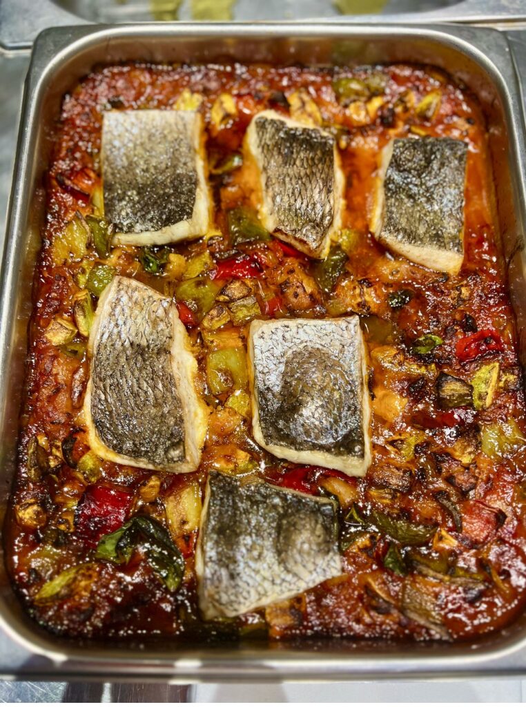Το ψάρι ταιριάζει τέλεια με τα λαχανικά. Σε αυτή τη συνταγή σας προτείνουμε να φτιάξετε ένα διαφορετικό μπριάμ, με την προσθήκη ψαριού. Τα αρώματα από τις πιπεριές, τα κολοκυθάκια, τις μελιτάνες, τις ντομάτες και τα μυρωδικά δίνουν στο ψάρι μας μια ξεχωριστή νοστιμιά. Είναι μια πρόταση που θα μπορούσατε να σερβίρετε και σε ένα χαλαρό κυριακάτικο τραπέζι αλλά ταιριάζει πολύ και στο ταπεράκι του γραφείου.