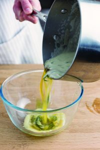 να μπορούμε να τις πιάσουμε. Χτυπάμε σε μπολ το αυγό, το τυρί και το μισό εστραγκόν ψιλοκομμένο μαζί με λίγο αλάτι και πιπέρι.
