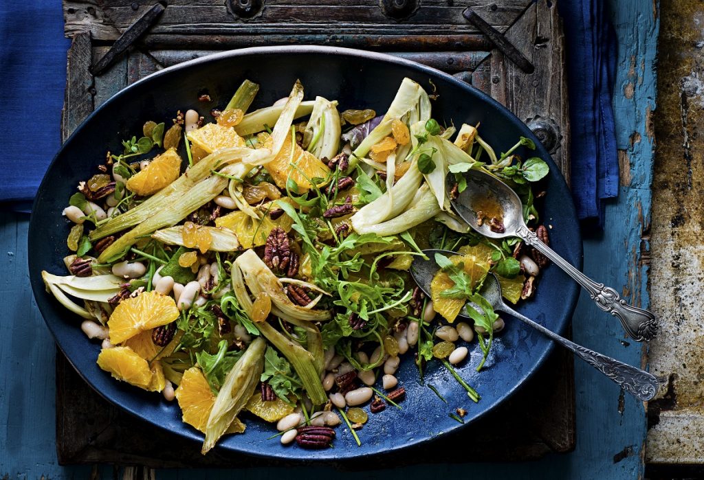 Σαλάτα με πορτοκάλι, λευκά φασόλια, καρύδια πεκάν και σταφίδες
