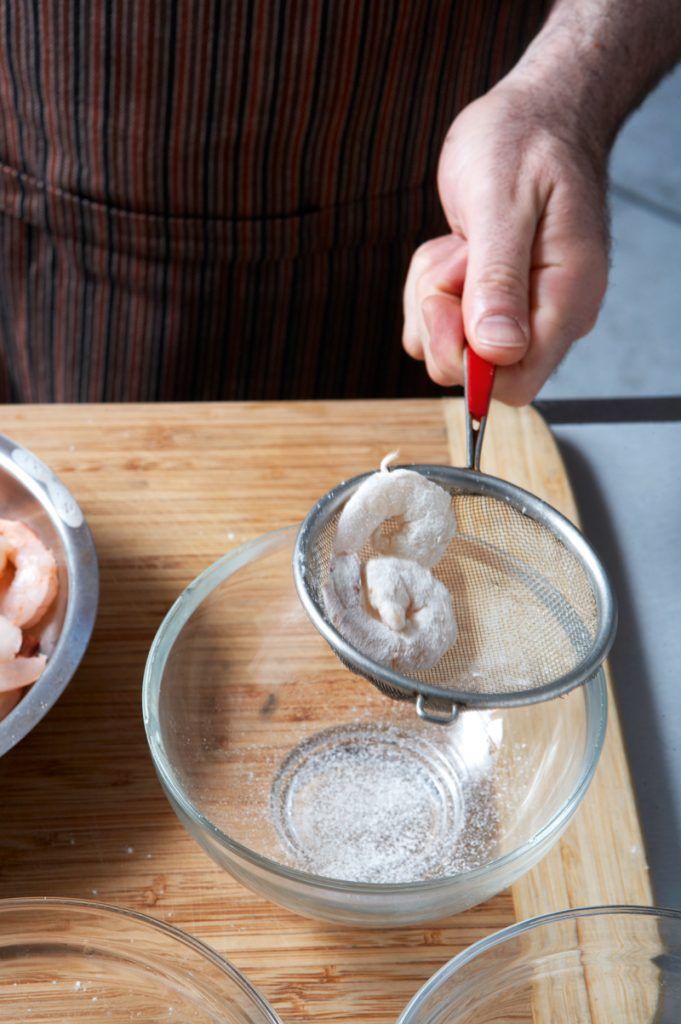 5. Τοποθετούμε το τρόφιμο στη σήτα και τινάζουμε καλά.