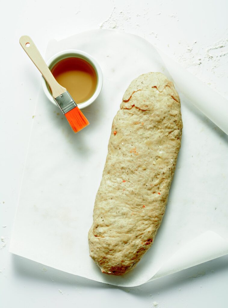 Τα διαδοχικά διπλώματα ανά 20 λεπτά λειτουργούν σαν μικρές ενισχύσεις — δημιουργούν στρώσεις γλουτένης που προσφέρουν ελαφριά αλλά σταθερή δομή, χωρίς πολύ ζύμωμα. Αν χρησιμοποιήσετε προζύμι αντί για μαγιά, η ζύμη θα αποκτήσει πιο σύνθετα αρώματα και μια ήπια ξινίλα, που ταιριάζει υπέροχα με τη γέμιση.