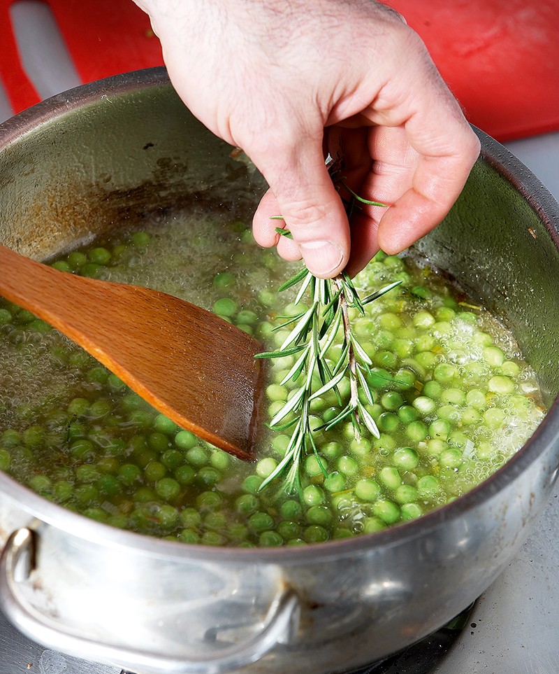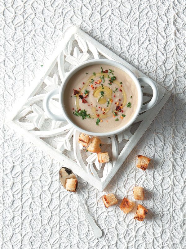 Οι αλεσμένες σούπες προσφέρουν μια άκρως απολαυστική βελούδινη υφή. Για να γίνει πιο ενδιαφέρουσα η σούπα μας και για να δημιουργήσουμε αντίθεση και πολυπλοκότητα στις υφές, χρειαζόμαστε κάποια συνοδεία. Αυτό που πάντα επιδιώκω για το συνοδευτικό μιας σούπας είναι να συμπεριλάβω τα υλικά που την απαρτίζουν σε διαφορετική μορφή. Έτσι, όπως θα δείτε στη σούπα αρακά για παράδειγμα, στη συνοδεία προσθέτουμε βρασμένο αρακά, πετυχαίνοντας από τη μία αντίθεση στην υφή του αλεσμένου με το βρασμένο αρακά και από την άλλη μια εναλλαγή της υφής μεταξύ βελούδινης σούπας και τραγανού. Η συνοδεία μπορεί να ανεβάσει το επίπεδο μιας απλής σούπας σε γκουρμέ γεύμα. Πειραματιστείτε μ’ αυτούς τους συνδυασμούς και απολαύστε τα αποτελέσματα.