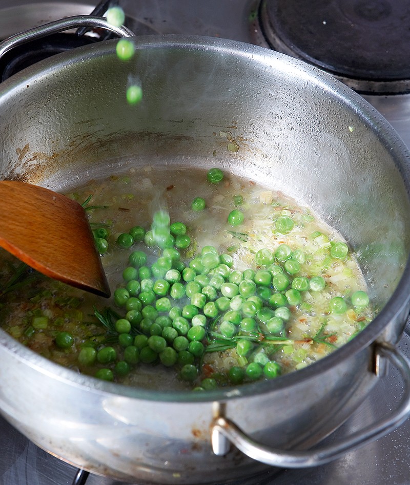 7. Προσθέτουμε τα φρέσκα βότανα (μαϊντανό, άνηθο κ.λπ.) γιατί, αν τα προσθέταμε από την αρχή, θα έχαναν το χρώμα και το άρωμά τους.
