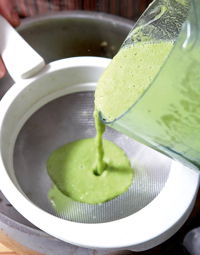 9. Σουρώνουμε τη σούπα με ψιλή σήτα. Το σούρωμα είναι απαραίτητο αν θέλουμε να απολαύσουμε μια πραγματικά βελούδινη υφή.