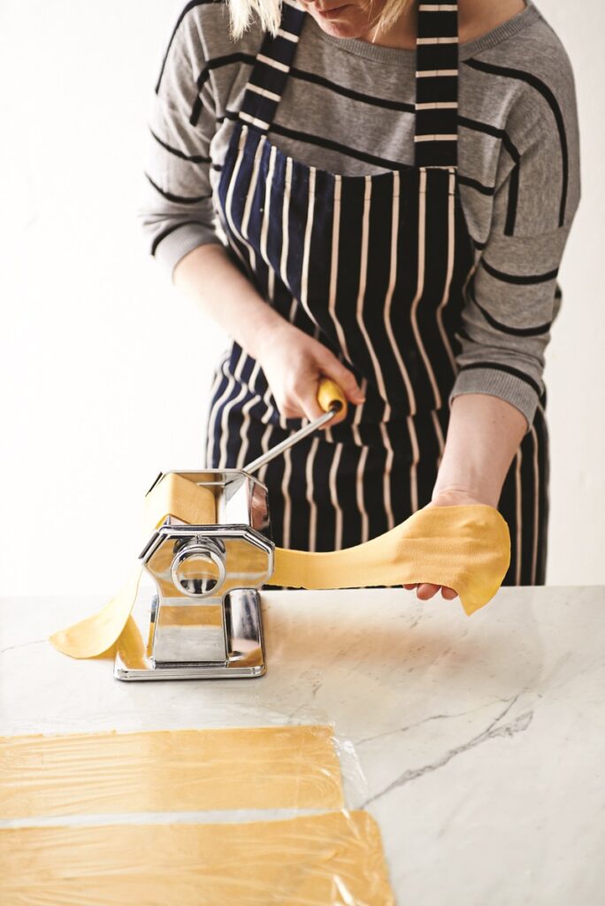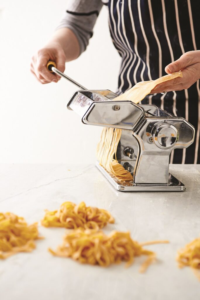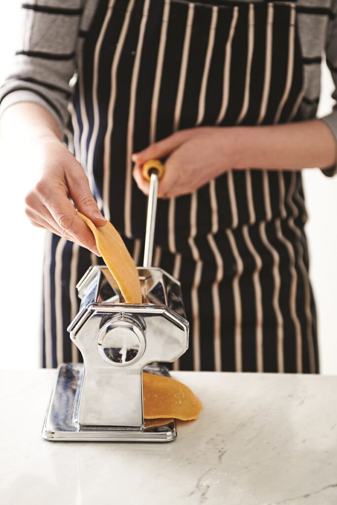 Για να φτιάξουμε τα δικά μας φρέσκα ζυμαρικά θα χρησιμοποιήσουμε τη μηχανή ζυμαρικών, που είναι αρκετά εύχρηστη και σχετικά οικονομική. Η διαδικασία μπορεί να γίνει και με πλάστη, αλλά είναι σαφώς πιο δύσκολη και χρονοβόρα. Επειδή κάθε αλεύρι είναι διαφορετικό, μπορεί να χρειαστεί περισσότερο ή λιγότερο αυγό η ζύμη μας.