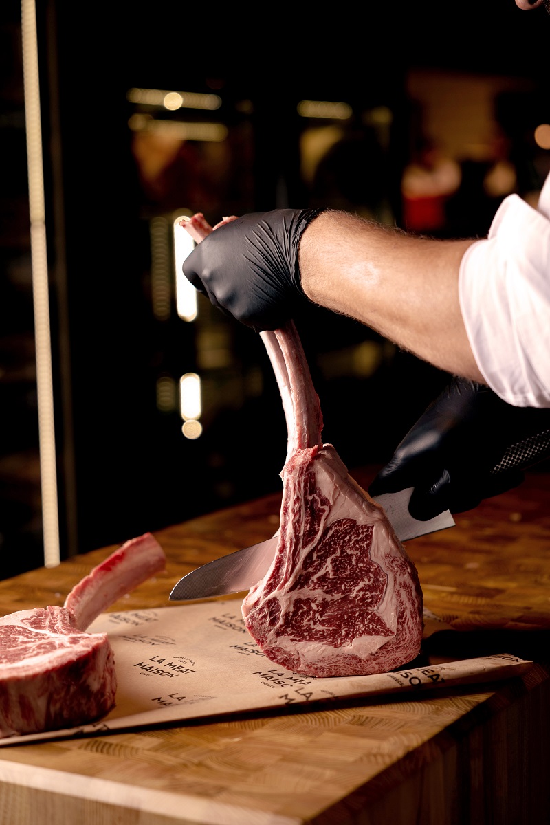 Για εμάς που η Τσικνοπέμπτη είναι απόλυτα ταυτισμένη με τις κοπές κρεάτων και μας βάζει κάθε χρόνο σε τροχιά σκέψης, τί να διαλέξουμε ώστε να απολαύσουμε το κρέας στα καλύτερά του – και στα πιο πληθωρικά του- οι προτάσεις του La Meat Maison, ευτυχώς μας βοηθούν να ξεδιαλύνουμε τα πράγματα: Tomahawk Wagyu που μπορεί να μας αναδείξει σε βασιλιάδες του ψησίματος, Flat Iron Black Angus (Tagliata), με ζουμερή τρυφερότητα και υφή που λιώνει στο στόμα (κομμένο σε λεπτές φέτες για εύκολο ψήσιμο στη σχάρα) ή αρνίσια παϊδάκια, ωδή στην ελληνική βουκολική παράδοση!