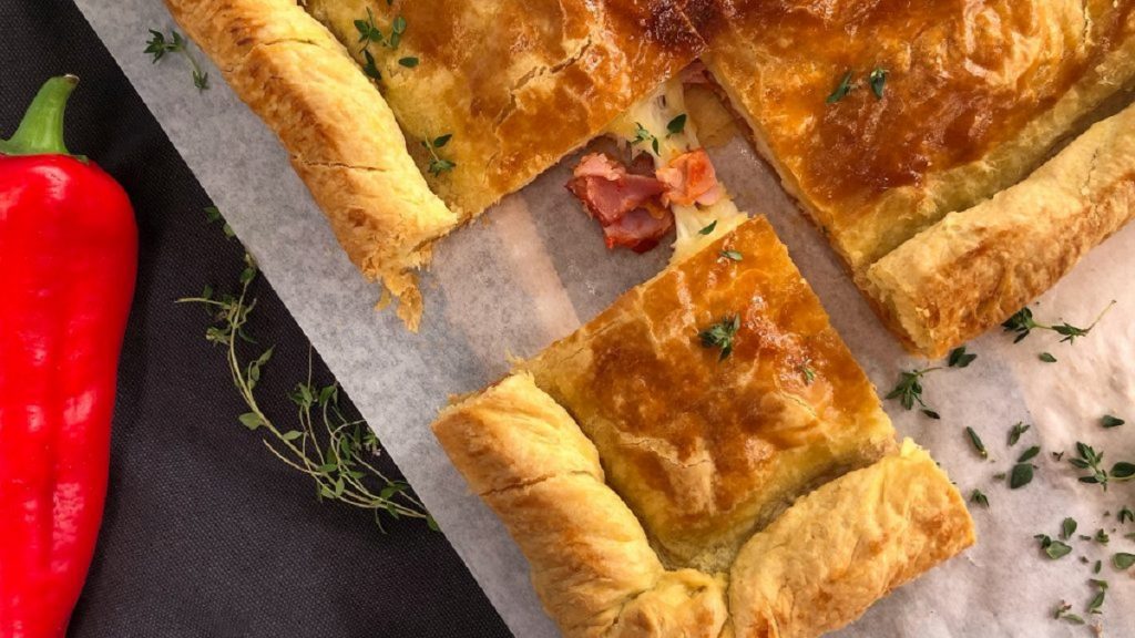 Ζαμπονοτυρόπιτα με αρωματική σάλτσα ντομάτας