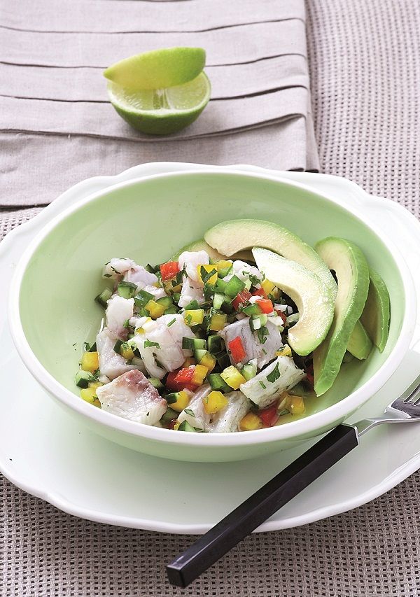 Λαβράκι σεβίτσε με αβοκάντο, αγγούρι, λάιμ και πιπεριές