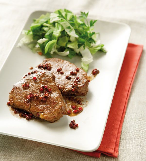 Ζουμερές μοσχαρίσιες μπριζόλες με πιπεράτη μαρινάδα και σερβιρισμένες με αρωματικό βούτυρο, που αναδεικνύει τέλεια τη γεύση τους. Για ιδανικό ψήσιμο ανάλογα με τα γούστα σας, μπορείτε να χρησιμοποιήσετε και ένα θερμόμετρο κρέατος.