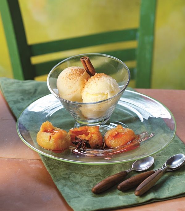 Κομπόστα από ξερά σύκα με παγωτό αρωματισμένο με κανέλα