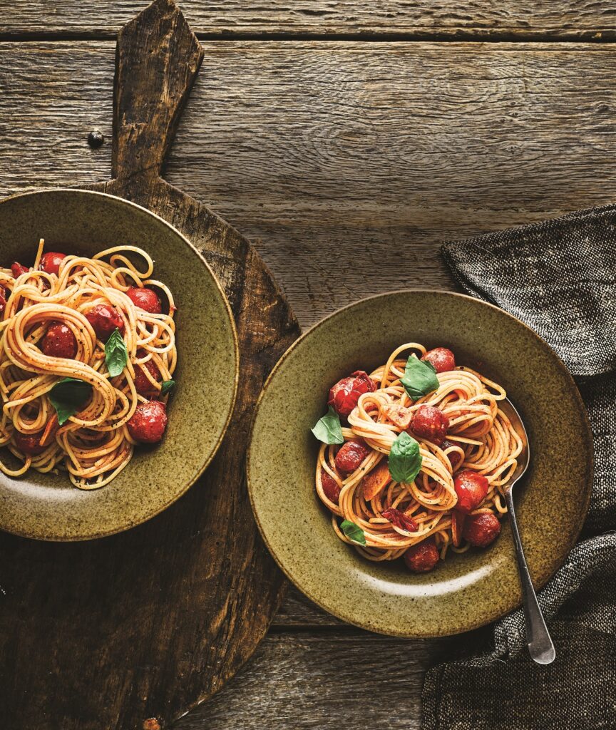 Εύκολο σπαγγέτι με ντοματίνια και βασιλικό, έτοιμο σε 20′