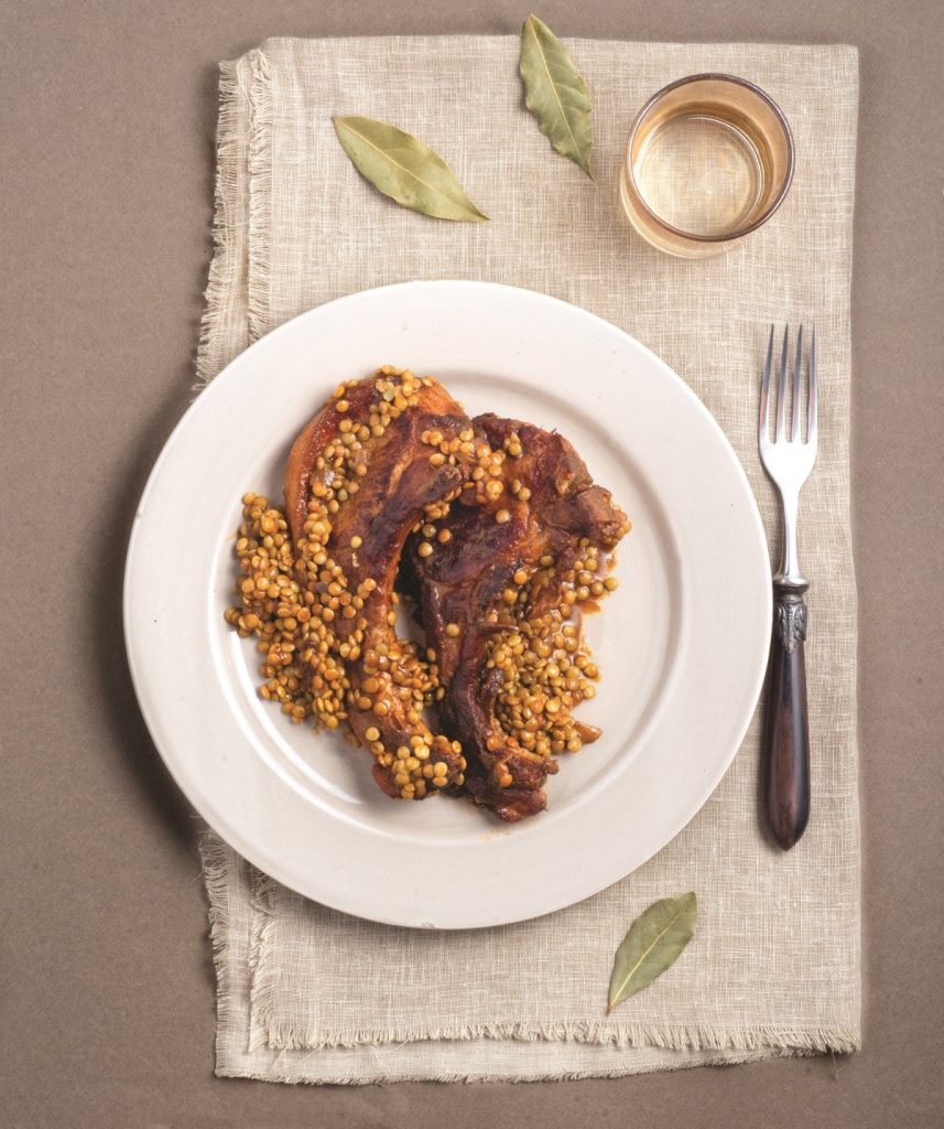 Οι χοιρινές μπριζόλες σε μια αναπάντεχη συνάντηση. Μαζί με τις πικάντικες φακές, θα σας εκπλήξουν με τη γεύση τους.