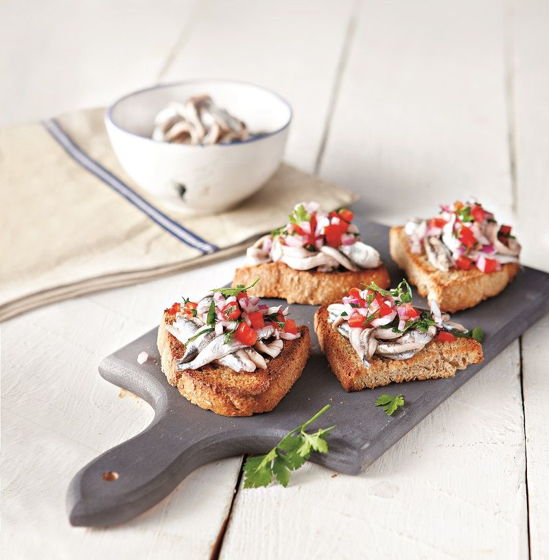 Δροσερές μπρουσκέτες με γαύρο μαρινάτο