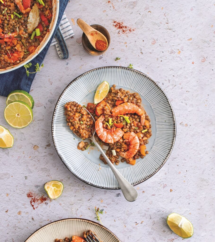 Πικάντικες φακές με γαρίδες και πιπεριές