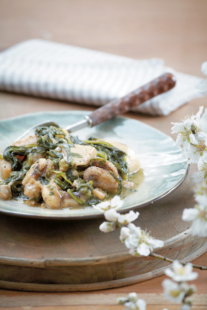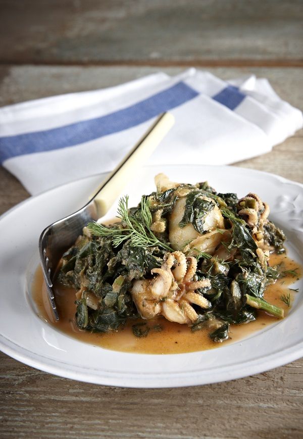 Νόστιμο φαγητό με σουπιές που «παντρεύει» στο πιάτο θαλασσινά με χόρτα.